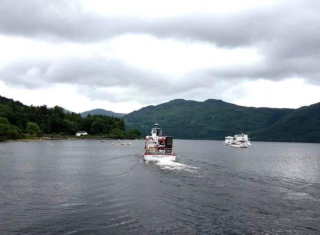 洛蒙德湖傍的A82公路不宽,且沿湖的西岸蜿蜒,少有地方停车,对我们来说,这是很遗憾一段路程,眼看着那么美的湖光山色(有一次看见数千只野鸭子),可惜不能停车,因为在这段路停车实在太危险了!照片摄于罗蒙德湖。