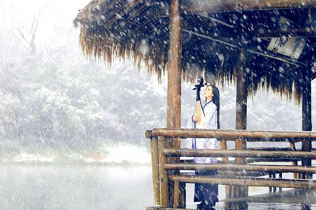 古装汉服:杭州是个典型的江南城市,非常适合古风拍摄,尤其是下雪下雨天一袭古装更显意境