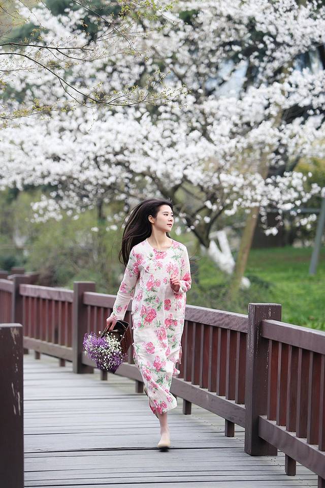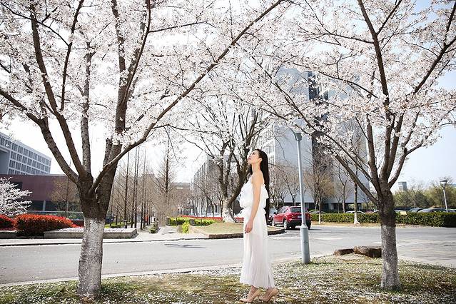 慵懒的午后,穿着心爱的长裙碎花衣,踩着颜色清新的小高跟,漫步樱花树下,多么美好的时光。