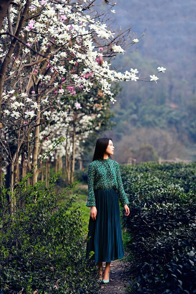 如果你刚好赶上3月来到杭州,时间充裕的你一定要去感受下何为玉兰花下茶园里的春色。