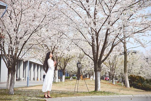 在浙大摄影系老师的推荐下我们才发现不用去遥远的日本,杭州原来也可以拍出日本樱花的味道