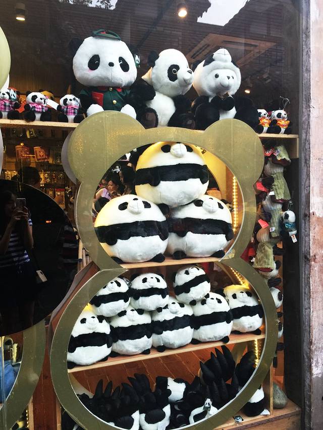 一进门就有好多熊猫的卡通形象 一堆小孩在那里拍 我也凑个热闹