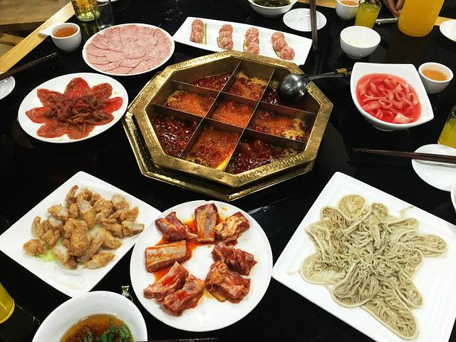要的九宫格锅底,点的中辣完全可以接受。毛肚、酥肉、鹅肠、排骨、牛肉。。。全部好好吃啊,我要流口水了。