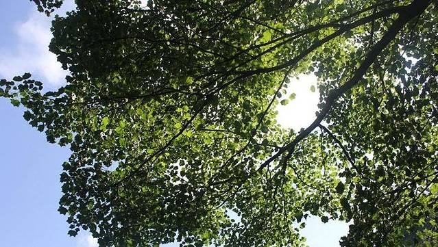 迎着阳光,排着绿树来一张逆光的照片,树叶金光闪闪。阳光也变的柔和了不少。