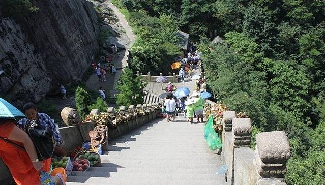 其实去天台的路,算比较陡峭的了。我就背着个相机都觉得很累,但是挑着胆子的挑山工,又是需要怎么样的精神,不过有点不喜欢,這些挑山工兼职做 起了乞丐,明着说要一瓶水,实就是要钱。不是一个两个这样,几乎路上都是。除了一个人没要。我主动找他说话,还没搭理我。除了这个人,其他的挑山工给我或是外地游客的印象应该都比较差吧。反正我是那种同情心泛滥,被人不想别人利用我的同情心。