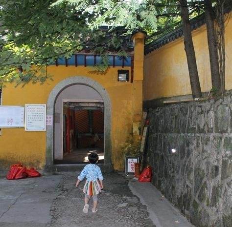 黄墙黛瓦。佛音袅袅。小姑娘开始爬的劲头十足。一直做领头羊。