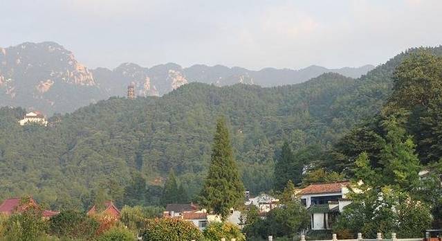 群山缭绕,由于离的不远,远处的万佛塔还隐约可见。佛寺墙上的南无地藏王菩萨也提醒着你,此时此刻,您所在的地方是地藏道场。