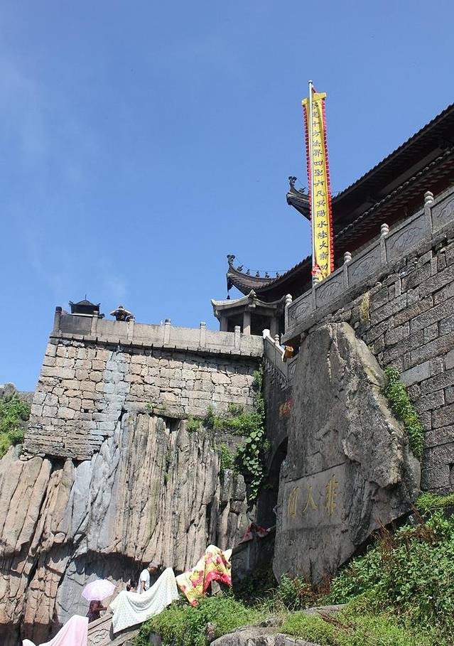 终于来到拜经台因金地藏在此诵经而得名。这是台,位于天台峰西侧,是崇山峻岭中一块难得的平台;又是寺,这座建于清代的寺庙,又名大愿庵,俗称古拜经台,省级重点寺院。原为一组狭长的建筑,民居式三进殿宇。