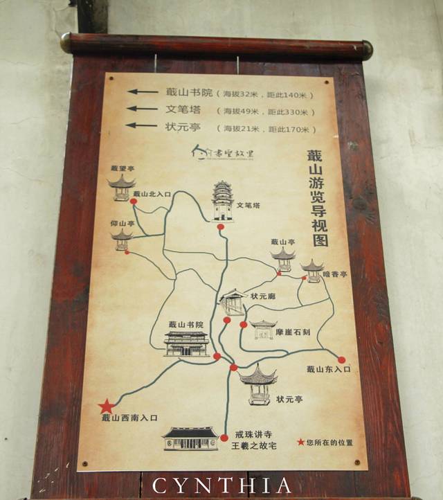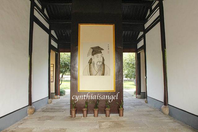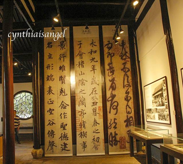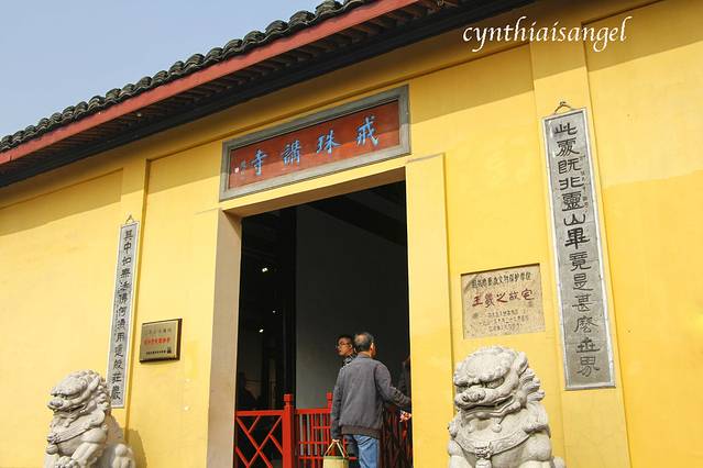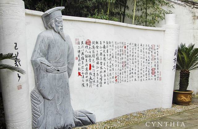 本身我对于东西南北是不分的,还好在文笔塔的时候遇到的那位拍延时摄影的小哥哥,他是绍兴人,人还是蛮热心的。他不仅送我了书圣故里的门票还把我带下山,送到了书圣故里的那条街上。从公园下来就是王羲之的故居戒珠寺,它的具体位置是在越城区蕺山南麓,在西街上,蕺山街北端。依山临街,幽偏适中,寺内殿廊洁净,佛相庄严,为城中八大名寺之一。原为晋王右军王羲之别业,现寺内现辟有王羲之陈列室。