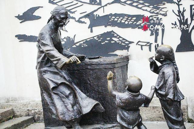 三味书屋出来是的门口有孔乙己给小朋友豆豆的雕塑,一路往前,还是鲁迅故居,简直走的有点蒙圈,感觉有三个似的。这里可以到达的百草园,而从百草园出来,鲁迅故里便是完整的游玩结束。
