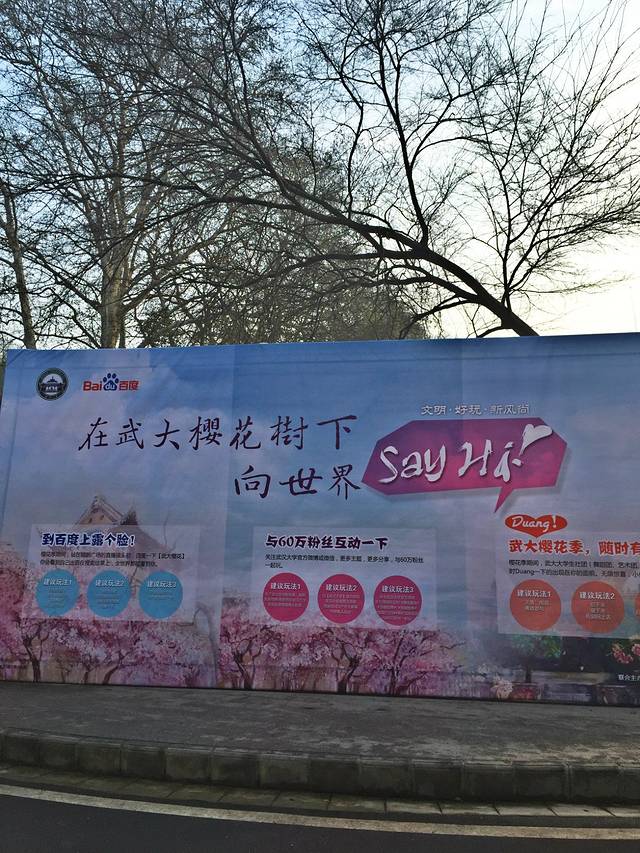 武大很大 早上也有晨练的人 随便问了个路 就找到了这个写着赏樱入口的大牌子 心里还是一惊 竟然也有不少人了~