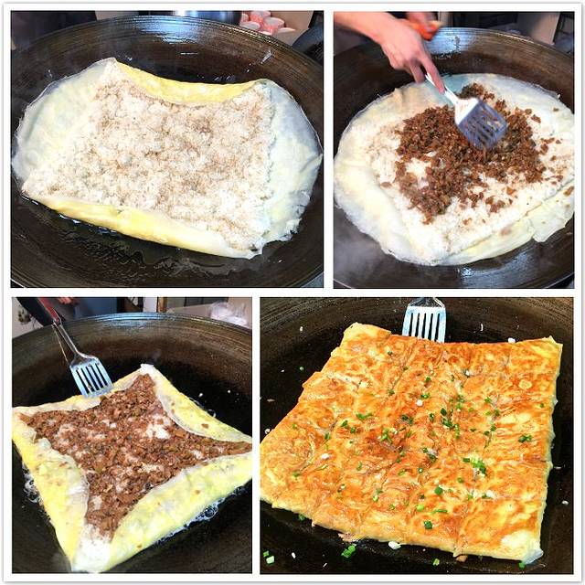 噔噔噔噔~ 去武汉前最期待的就是三鲜豆皮儿啦 在北京时在湘鄂情吃过 觉得很好吃啊 由于我们到的早 店家还没有做 小伙伴上前去问 于是我们就看到了整个制作过程 看起来很有食欲吧~