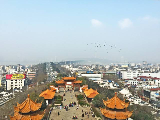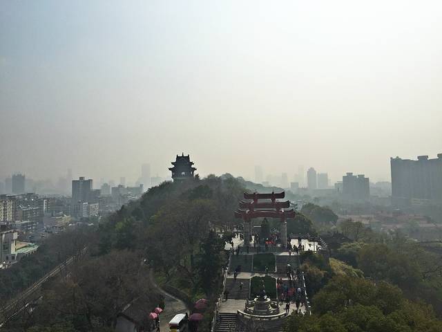 登上黄鹤楼 远眺 逆光拍摄仿佛在霾都一般