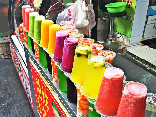吃饱了之后小伙伴提议去买些水果 顺便把大家“辛苦”摇来的麻麻黑甜筒换了~
