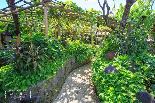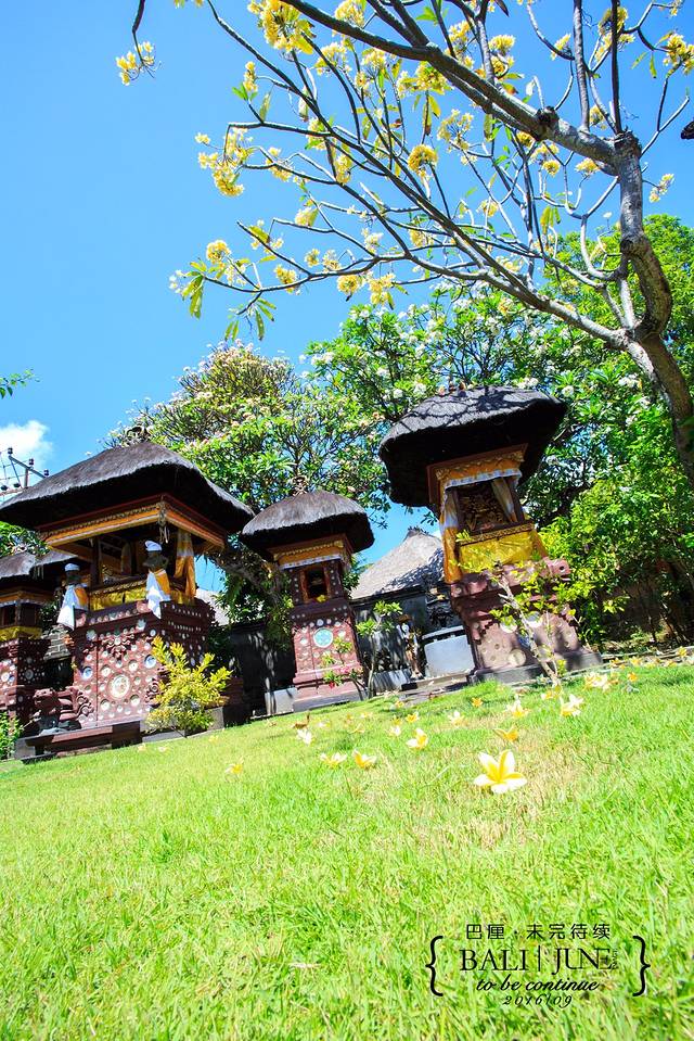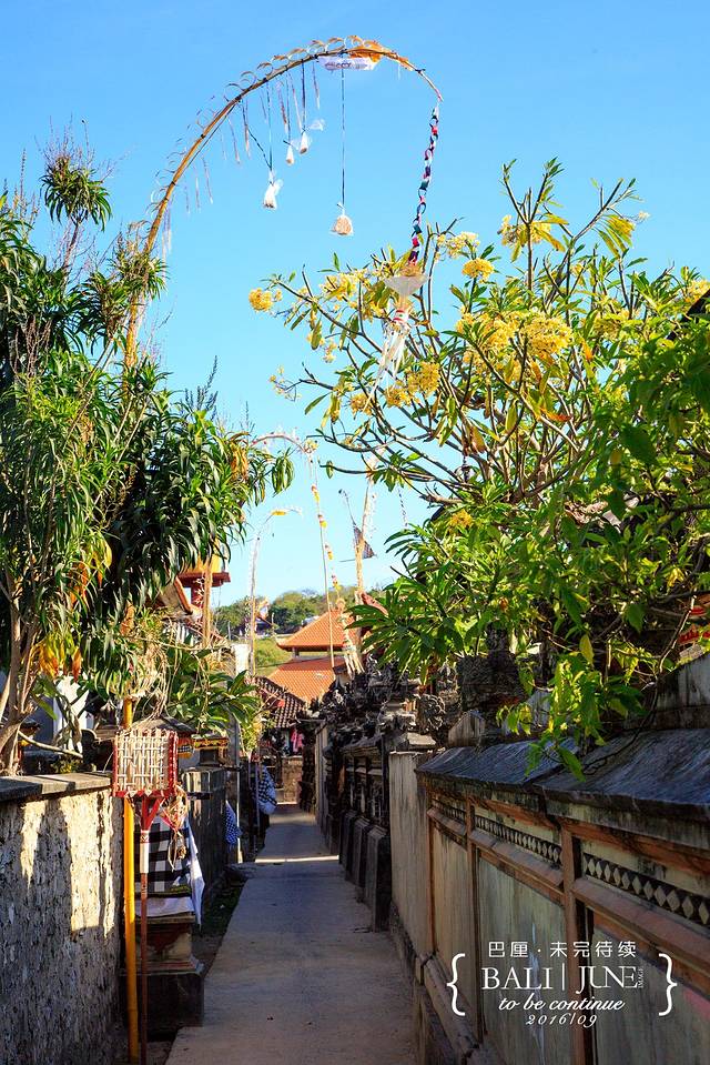 羊肠小道两旁鸡蛋花夹道,用晒干的菖蒲条编制而成的祭奠蓝随风摇曳,浓浓的巴厘岛风情也在这时扑面而来。
