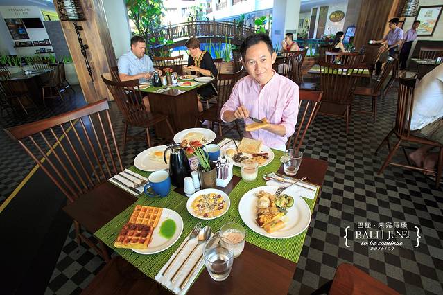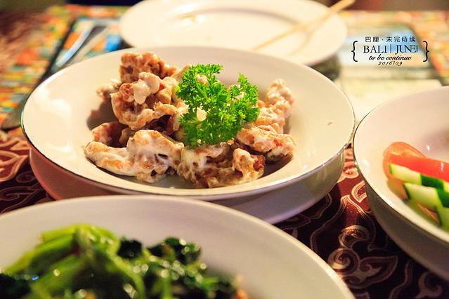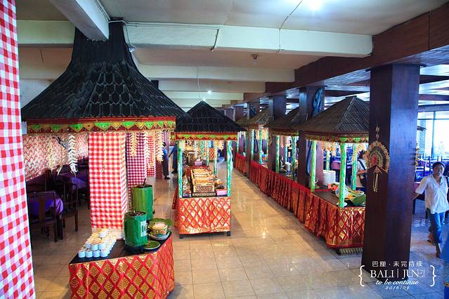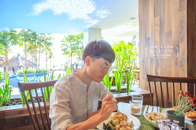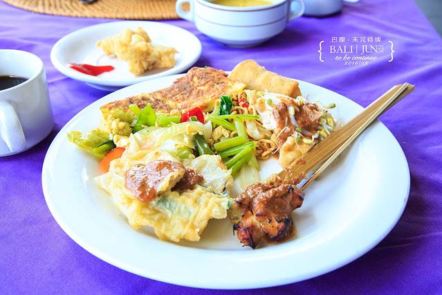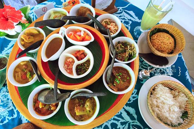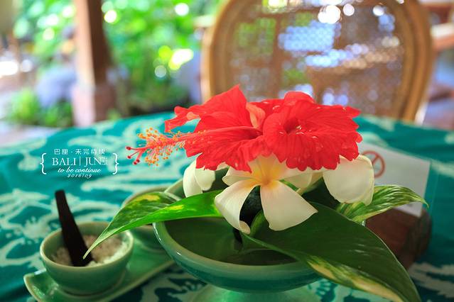 这家餐厅在库塔可是老字号咯。有一定的名气。最有名的是他们的印尼传统美食套餐,就是各种印尼家常菜的合集。中午餐厅倒是人不多,入座后便是风扇吹起的扶桑花和鸡蛋花的香气。