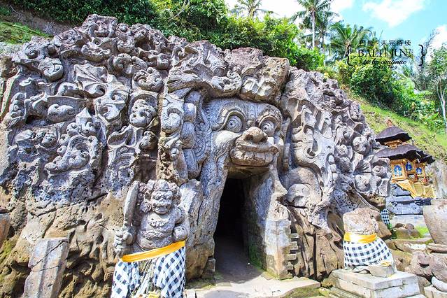 象窟边上还有几座巴厘岛式的神龛庙宇。图中的应该就是印度大神毗湿奴和他的坐骑伽鲁达神鸟