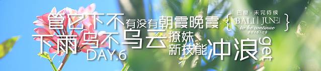 人生难道不就像这冲浪一样,一次次摔倒、一次次站起,一次次等浪来,即使伤痕累累,依然享受着成功的乐趣?所以,就让这次的巴厘岛未完待续吧······