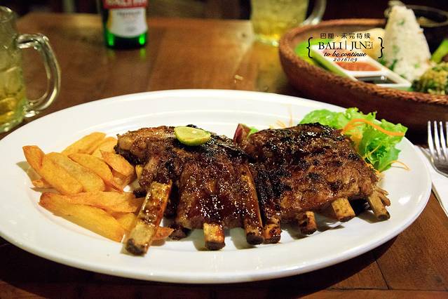 原本以为是快艇公司统一安排车子送我们去乌布,没想到是专车。让人惊喜不小。从沙努尔到乌布要1个多小时,多乌布的时候天都已经黑了。直接让司机送到了大名鼎鼎的PUNDI PUNDI,尝一尝传说中的脏鸭和猪肋排。基友出行啤酒不能少,BALAI HAI来一瓶打底。