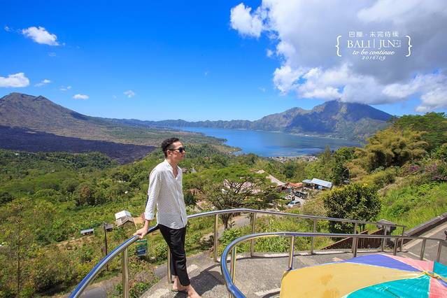 做好登记,记录好我们离开的时间以及接我们的快艇公司,工作人员领着行李带我们去房间。我们的房间在前台后面的“山后”,要爬上好高好高的楼梯,对于飞机+汽车+快艇快一整天的骏爷来说······唉······要命啊·····巴特,当从转角拐出来的那一刹那,骏爷整个人仿佛被眼前的景色电了一下。矗立在云中的京打马尼火山,澄净碧蓝海面上卷起的一波波汹涌海浪,还有那一望无际的辽阔视野,这一天的舟车劳顿又算得上什么呢?