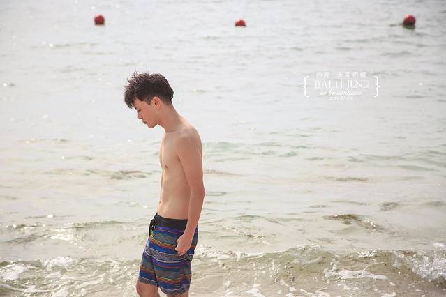 其实上冲浪板的时候大腿和胸部会一直跟冲浪板摩擦,穿件背心的话只会摩擦得更痛,加上骏爷一直摔,摔得好火大,直接把衣服脱了。