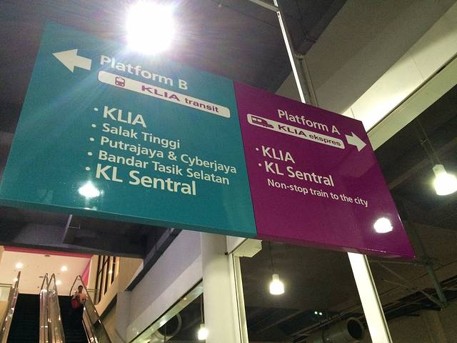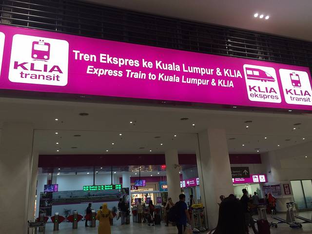 吉隆坡机场有多大?从T2到T1要搭乘机场快线。因为骏爷和京京没有托运行李,所以过关时间较快,算上走路的时间,从下飞机开始大概30-45就能抵达机场快线的售票处。2马币一个人。我们用的是2月份去亚庇剩下的马币,如果大家没有建议在机场的兑换处兑一点。因为赶着转机,骏爷没有拍照,网上盗两张图给大家参考下。嘿嘿~