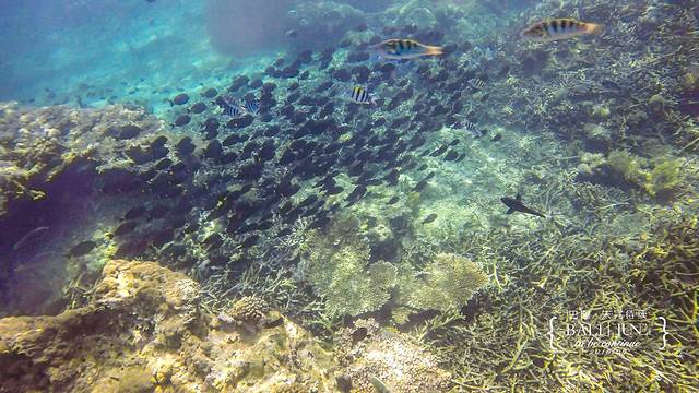 这一片区域的海底有很多碎珊瑚,但也有一片一片的珊瑚群,总感觉是人工种植的。