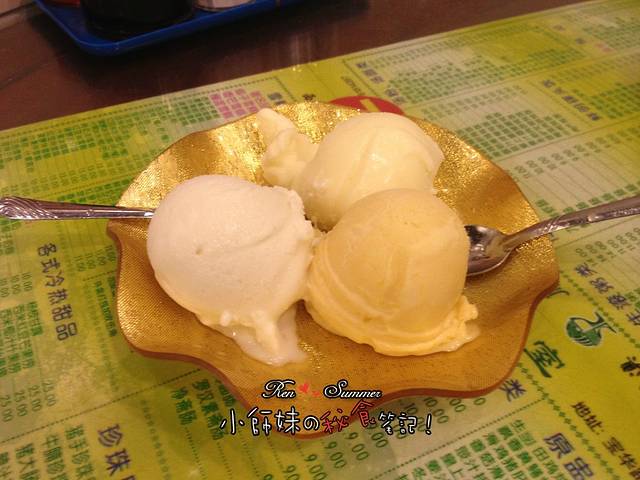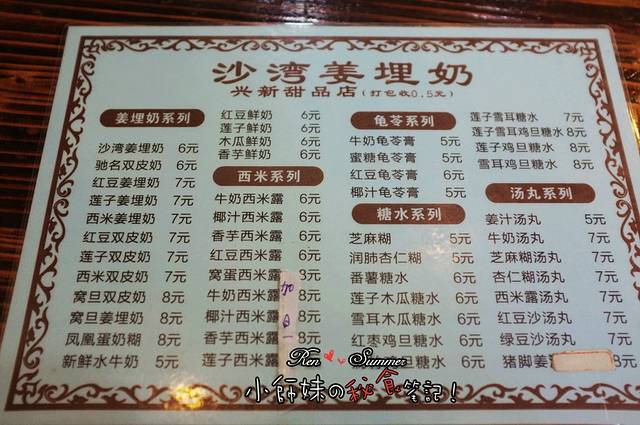 因为就两个人,没办法吃太多,所以点的只能是招牌。一碗红豆沙,一碗凤凰奶糊。红豆沙的出品算是不错,主要是火候够,红豆炖得起沙了,入口绵滑。另外制作的过程中添加了陈皮,喝起来有一股特殊的回甘。小师妹嫌陈皮的苦味太重,影响了口感,她是小清新派的,这个只能是见仁见智啦!凤凰奶糊给人哥的感觉是挺震撼的,关键是此前没有吃过这玩意,甚至连听都没有听说过,但是味道却很像小时候吃的五羊牌蛋奶批。回来查了资料才发现,是用牛奶鸡蛋加白糖炖制的,我说难怪!凤凰奶糊自然是糊状的啦,入口的感觉极甜,甚至甜得有些发腻,就连热爱甜食的小师妹都觉得有点消受不住。但总的来说,品质还是上乘的,但凡能够勾起童年回忆的食物,人哥都会给予较高的评价。