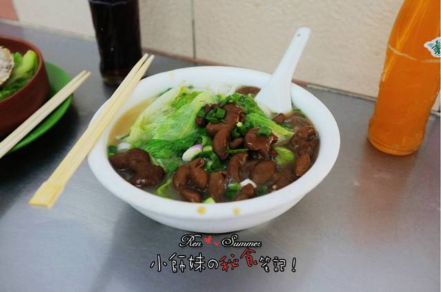 在那碗肥肥的大肠被端上来的时候,单看那泛着诱人油光的成色,人哥就知道,这出品必然不简单!大肠装了满满的一碗,虽然底下铺了面筋,但是20块钱的价格,放在这个地段,还是相当厚道了。大肠选取的是大肠头的部位,肉质非常厚,一口咬下去,油香四溢。大肠卤的时间够久,非常入味,而且入口即化,并不黏牙。底下的面筋十分筋道,和大肠简直是绝配,不致于太肥腻。如果还吃得下的话,再配一碗大碗粉,那就更棒啦!人哥上回吃了大碗粉,印象中水准还算可以。当然,也可能是因为人哥对汤粉的偏好,大家看着办吧。