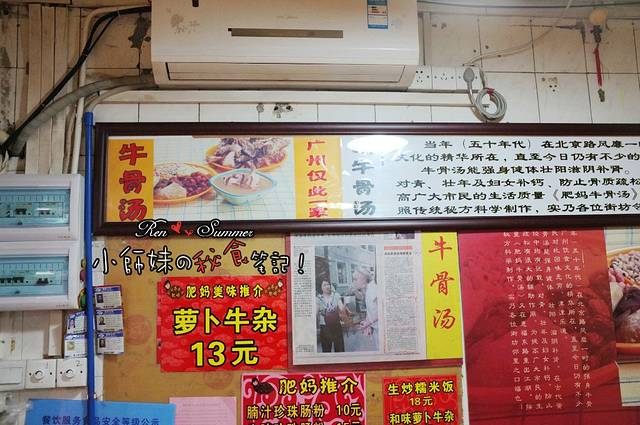 确切地说,肥妈牛骨汤不在文明路上,而位于惠福东路。只是人哥和小师妹从联合书店逛出来的时候,时间尚早,便决定顺路去喝一碗牛骨汤。人哥最早听说这肥妈牛骨汤,是在N年前看G4的时候,一篇题为“肥妈牛骨汤重出江湖!”的报道。报道中把这牛骨汤描绘得很是牛逼,说是广州老味道的经典,而且还是经典中的经典!早在两年前,人哥偶然路过此处,就曾经坐下来一试这传说中的美味,只是当时的感觉很是一般。此次既然报着写东西的心态,人哥觉得还是有必要再来一次,或许会有不同的体验。