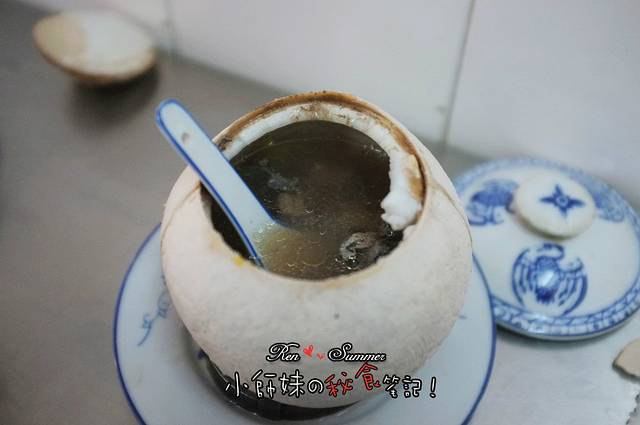 接下来是炖竹丝鸡,本来有两种选择,一种是炖盅炖的,一种是原只椰子炖的,相差不过两块钱,人哥自然选择了后者。而事实上,基本上身边所有吃客,面前都摆着一只椰子。用原只椰子炖汤,在家里自己做的话,材料并不好找,或许正是因为这一点,成就了达扬的金字招牌。竹丝鸡汤用的还是枸杞之类的传统配料,但因为有了椰子,汤水里面带有淡淡的甜味以及椰子的清香,口感十分自然。小师妹却说,味道还是过甜了,不够清新。她以前在达扬喝的椰子炖竹丝鸡,口感没那么腻,椰肉还是脆脆的,不像现在软趴趴的。若是往坏处去想,或许是店家为了节约成本,把椰子回收,循环利用了。但几十年的老字号,不至于用如此愚昧的方式砸自己的招牌吧。若往好处去想,或许是季节的原因,椰子本身比较老,要么是因为炖的时间太长,把椰肉给顿老了。喝完椰子炖盅,老食客们总会有一个招牌动作,把不吃的椰子肉全部给剜下来,那么也就自然而然避免悲剧的发生了。