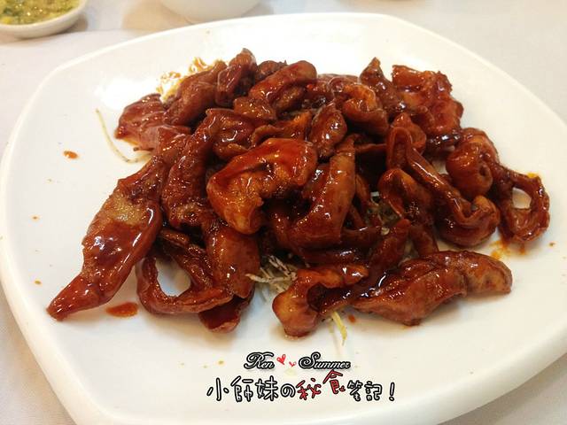 涛哥家好吃的东西太多,人哥来了两趟,每趟都带了六个人,也没能够吃遍。在此只细说牛逼的几道,不得不点的。首先要说的自然是生蚝。碳烧生蚝源于人哥的老家湛江,却在广州发扬光大,成为各大食肆和宵夜档必备的一道菜。若论食材的质地,涛哥家的生蚝绝对货真价值,每一颗蚝肉都是精挑细选,肥美而饱满,大小均在三指宽左右。在人哥有限的体验里,算得上是广州数一数二的。碳烧生蚝,最常见的佐料便是蒜蓉,然而人哥此次推荐却是清烧。粤菜讲究原汁原味,清烧才是最能够还原生蚝鲜味的做法。烹饪的手法,说简单些,就一个字“烧”。但是涛哥生蚝所有的精髓也就集中在这一个看似简单的“烧”字。说白了,就是火候。涛哥生蚝,不加任何佐料,只在上桌前撒下几片切碎的柠檬草,稍微提一下味道。虽然重口味的同学们可以选择淋上几滴调好的芥末酱油,但人哥以为最佳的吃法还是直接入口。接下来的感觉,实在是很难描述,因为人哥的记忆开始断片了。人哥勉强能够拼凑起来的碎片,有那瞬间爆开的充盈着整个口腔的鲜美的汁液,有那滑溜溜的如豆腐般的却又富有弹性的口感,有那柠檬草的若有若无的淡淡的清新的甜味,但人哥始终无法清楚地还原自己的配额是怎么样被消灭掉的。面对这样的食物,小师妹自然是不可能多留一点给人哥的,不向人哥撒娇卖萌,好把人哥的那份也抢去,已经是谢天谢地了。生蚝45块钱一打,估计全广州都找不到这个性价比了!