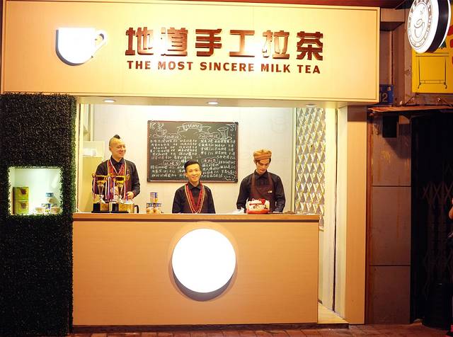 地道手工拉茶,这个不像招牌的招牌便是这家奶茶店的招牌。
