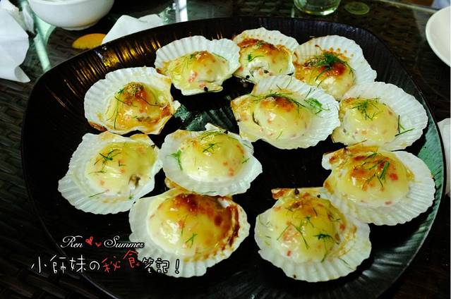 接下来要说的,自然是火腿酱焗扇贝。这算是重口味的一道菜,亮点已经不再扇贝本身,而是口味浓郁的“火腿酱”。人哥以为,哪怕是没有扇贝,单单是用贝壳乘着满满的“火腿酱”端上来,人哥也会拍手叫好,因为实在是太好吃了!具体的做法不得而知,人哥甚至是第一次听说“火腿酱”这个玩意,感觉更像是牛奶加芝士,然后配上了一些火腿粒(PS:直到很久以后,人哥才想明白,这道菜是“火腿,酱,焗扇贝”)。热腾腾的的扇贝端上来,黄澄澄的颜色,让人立马联想到刚出炉的新鲜蛋挞,口感也十分的相似,入口即化,嫩滑无比。不同的是扇贝带来了海鲜的鲜甜以及爽脆的嚼劲,两种口感交织,构成了一种其妙的感觉。和生蚝一样,人哥也是最快消灭完的自己配额的一个。第一次只点了一打扇贝,人哥分到了两个,第二次来的时候本来想要加码,点够两打。可是涛哥极讨厌客人浪费食物,所以所有订单都会严格把关,绝不让你多点,人哥下的两打订单硬生生被涛哥划去一打。凭良心说话,这东西人哥一个人就能吃一打,但因为不敢得罪涛哥,也只能够强把口水咽进肚子,就此作罢。