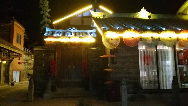 小镇上即便是入驻的店家,在店面都是花了不少心思融入这个小镇的,风信子,脸谱,蓑衣,芭蕉,小竹......各个店的灯也是风格迥异值得一看。