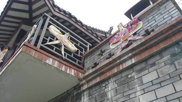 小镇的一屋一檐都十分用心的,处处透露着古朴的风情,一把把油纸扇点缀其中,一只只风筝散在空中,一个个灯笼轻轻浮动,还发现许多有意思的但说不出历史沿革的东西,这是我在镇子里边随意散步的乐趣之一,处处有惊喜。