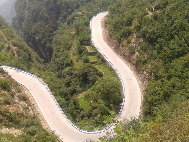桃花谷是一条谷中之谷,长约4km,谷内奇峰突兀,峭拔雄壮,流泉飞瀑,潭潭相连,黄龙潭、飞龙峡瀑布、飞龙峡栈道、九连瀑、桃花洞等景点珠联璧合,构成了桃花谷山灵水秀的峡谷风韵。“太行天路”景区位于太行山之巅,北起桃花谷景区,南至仙霞谷景区,全长约30km,既是景区环线游览道路的重要组成部分,更是俯瞰太行山壮美风光的绝佳位置。 乘坐观光车游走于太行天路,犹如置身百里画廊,满眼望去,无处不是大气磅礴的国画山水长卷,深邃的峡谷、直立的岩壁,带给游客强烈的视觉震慑。结合山势山形,太行天路沿线设置有10余座观景台,临栏远眺,感觉心胸开阔、杂念全消。