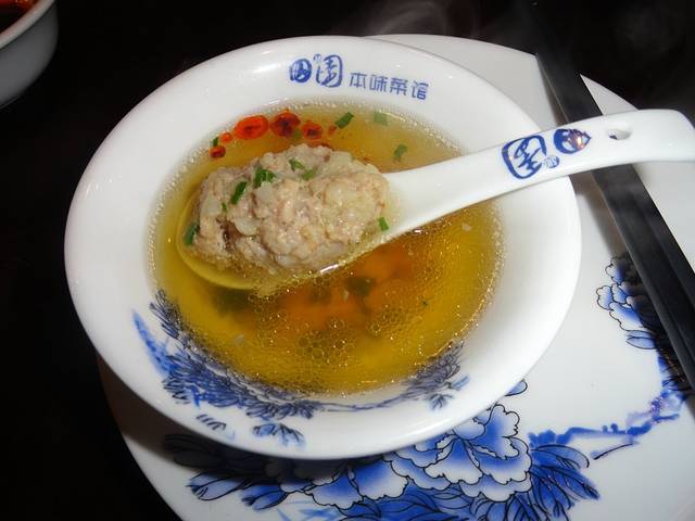 中午吃饭,还是到第一天晚上的小店里吃,领班大姐特骄傲的推荐镇店名吃-肉丸子,到目前为止吃过的最好的丸子,香、糯,尤其汤太好喝了,确是镇店名吃。