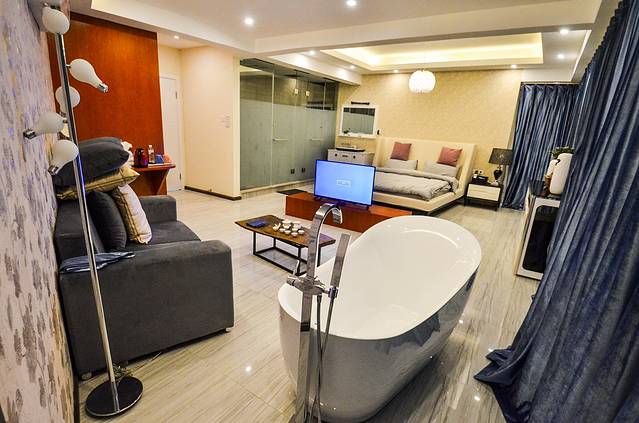 打开房门给我的第一印象是颇具艺术设计感、且带有咖啡馆风格特色的客房客厅立马让人感觉到此客房的逼格有提高了很多。