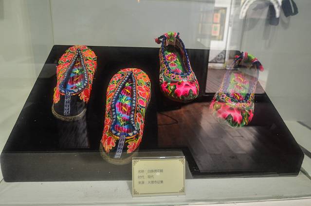 白族服饰大多为红白相间,女子服饰艳丽、朴素,上身衣装及头饰较为复杂,下身裙饰比较简单,年轻姑娘的服饰较为艳丽,年长女子的服饰崇尚淡雅。年轻姑娘好梳辫子,头饰叠成长条形盖于头上,红色的绳子绕辫挽上,形成上为龙马角,下为龙凤尾的格局,左侧一条缨穗垂于耳畔,随风飘扬。“苍山绿,洱海青,月亮白,山茶红,风摆杨柳枝,白雪映霞红”,正是对白族服饰的真实写照。