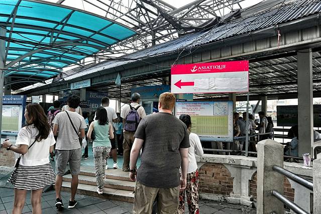 位于昭披耶河畔的Asiatique夜市,从沙吞码头(Sathorn Pier)有免费的往返接驳船可以去到。乘坐bts Silom线,到达Saphan Taksin站,按往Sathorn Pier的指示出来,就能马上到达码头~