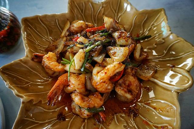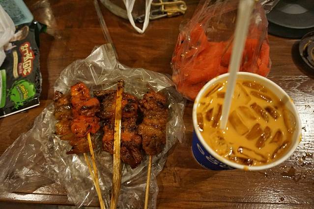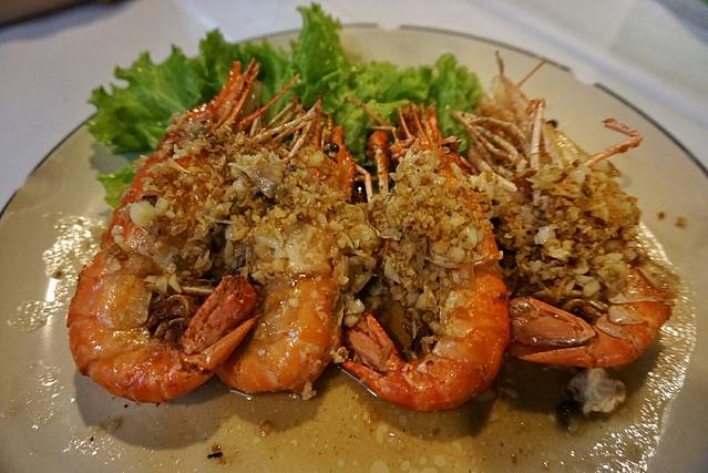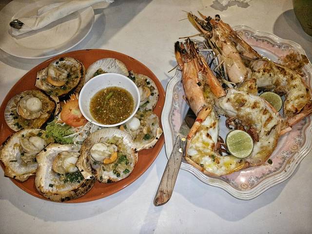 不过真的超级好吃,虽然是海边长大的人,但夜市第一次见到这么大的对虾(和大龙虾差不多大了...)点了两只,好像是1000b/1kg,真正的lobster是1500b/kg~还有8只扇贝才20元RMB左右~大虾是中间切开,撒上一些芝士烤的,再淋上酸辣带有柠檬皮碎的鱼露汁简直人间绝品啊!多汁鲜美超级香到令人流泪...太令人怀念了。