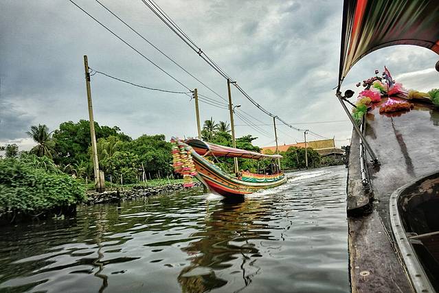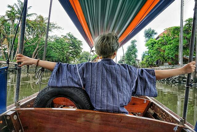船速颇快,当天刚下过雨十分清凉,不自觉地心情大好。曼谷大大小小的水道未必风景秀美,水质清澈,甚至难免充斥着发展中国家的污水味道,但这就是泰国,不是吗?