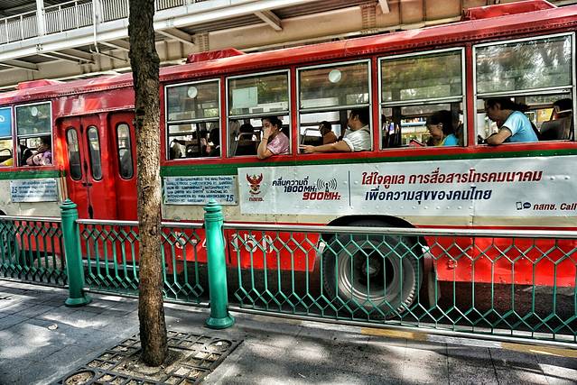 公交:许多公交车都没有空调且十分拥挤,载满了熟悉地形的泰国本地人...虽然很复古有风情,但单是从外面看起来就能想象有多热...所以这次我没有乘坐