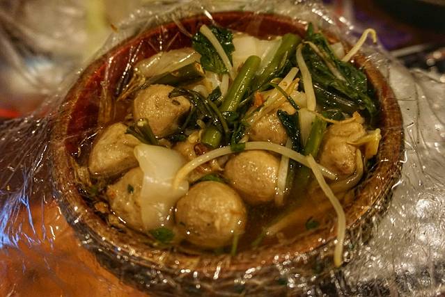 之前说到的小妹妹肉丸汤煮粉,记得加一点鱼露和辣椒之类的味道会更好哦~不仅味道好,最重要是小妹妹很清秀,这么小年纪就辛苦摆摊了...第二晚去买的时候,看到她妈妈也在,腿有些跛~如果大家到了素可泰,可以去支持一下她们生意~(凶凶回眸看我的不是她妈妈,是顾客..)。