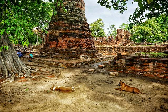 大城的各个主要遗迹门口都需要买票,但绝对都值得一看,不要吝惜~虽然最出名的是树佛,但几乎每一处都苍凉壮观,非常震撼...许多暹罗野生汪在各个遗迹里游走,在树下乘凉打滚,很可爱,但不要去打扰它们以免发飙被咬。