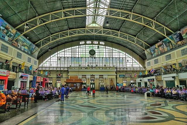 到了火车站就感觉没白来...没有安检,没有拥挤的人潮,通透复古的候车大厅和铁轨只有一道矮闸门,能看到颜色鲜艳的方头火车,与国内火车站迥然不同,你还可以在imformation窗口领一张英文的全泰国的列车时刻表,窗口里的工作人员英文也很不错,有疑问可以咨询他们。