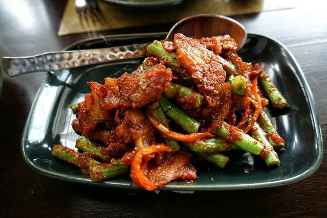 XX酱炒豆角猪颈肉(不知道什么酱),