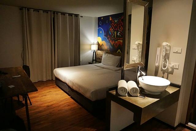 一家以复古为主题的酒店,规模也蛮大的~不论从建筑外墙还是室内装饰都非常复古,小小的电梯,通透的回廊和楼梯,所有都是60's的feel!有泳池,有mini bar,有漂亮的阳台~设施当然有他的弊端,因为确实有些旧,但都不影响使用~毕竟选择他就是冲着这个feel去的了。前台的服务也很好,态度很热情,英文好,沟通没障碍~笑容都是发自内心的真诚!~去素可泰需要到素万那普机场,前台帮叫车是一口价500b,还是蛮方便~