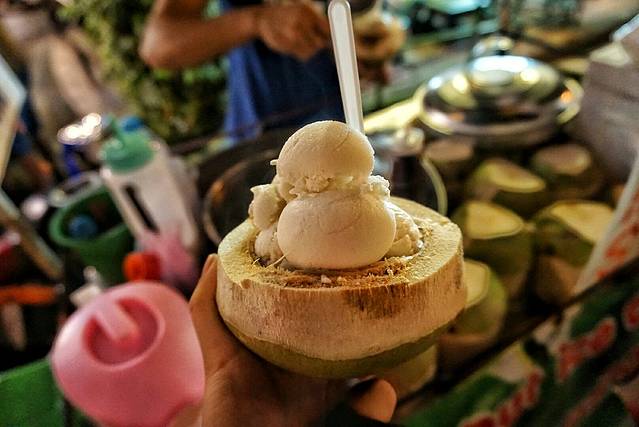 随处可见的椰子冰激凌意想不到的好吃~超级纯正的椰子味,是考山路上最值得推荐的食品吧..